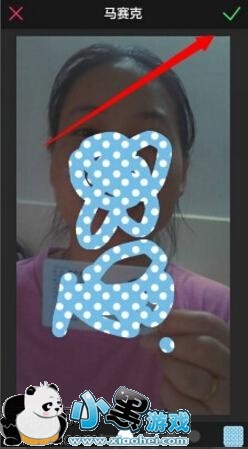 5、选择马赛克的素材,然后选中你要买塞克的部位进行涂鸦,当涂鸦部分都打赏马赛克以后,如果没问题就点击界面右上角的钩,如下图。