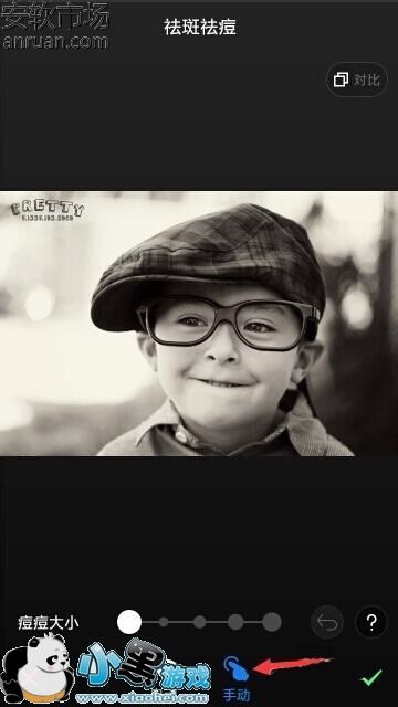 3、点击以后,还会让你选择是手动去除还是自动去除,点击手动去除这个选项,然后调整工具的大小,如果觉得图片的一些细节不好处理的话,还可以把图片放大处理。