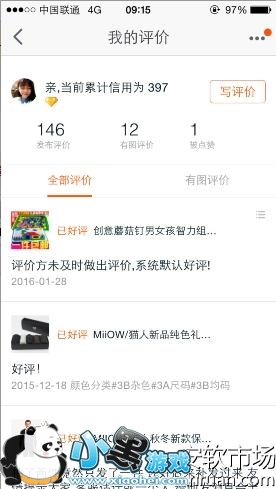 2、在我的评价中可以看到你的当前累积信用度以及全部评价;