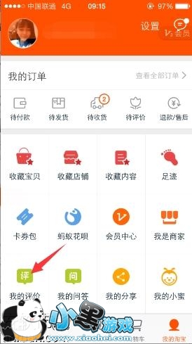 1、打开手机淘宝客户端,在我的淘宝中,找到我的评价,如图:
