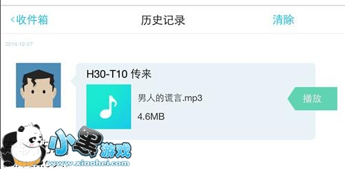 7、当文件传送完毕后,就可以在收件箱->历史记录里查看。