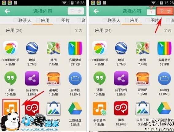 2、然后进入到内容界面,选择你要发送分享的内容,选择好以后,点击界面右上角位置“以一步”这个按钮,如下图。