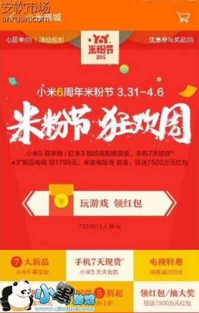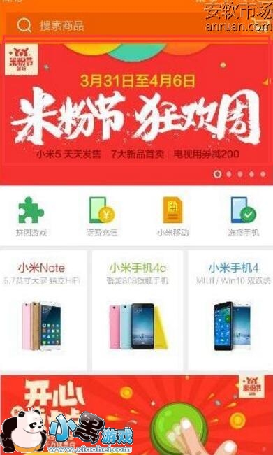 小米六周年米粉节抢红包教程 1、首先,下载小黑市场最新版的小米商城,打开以后,点击首页上方的公告栏,如图: