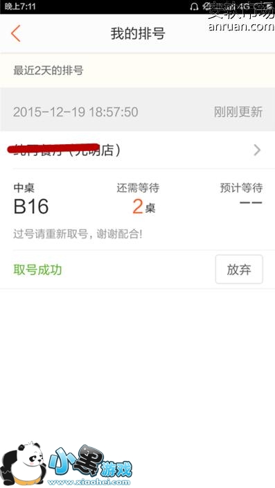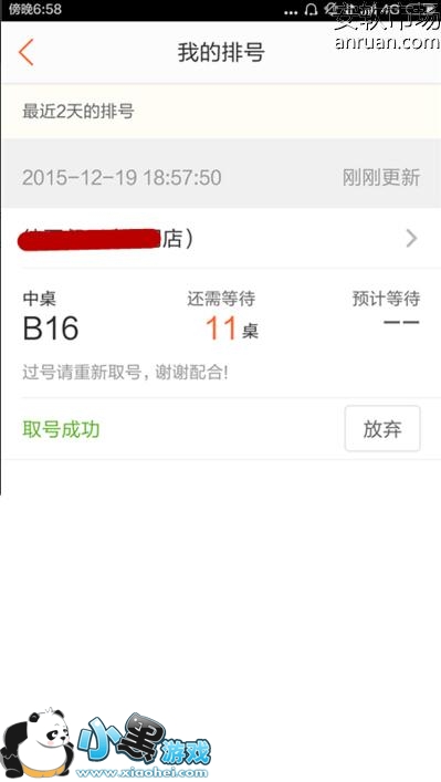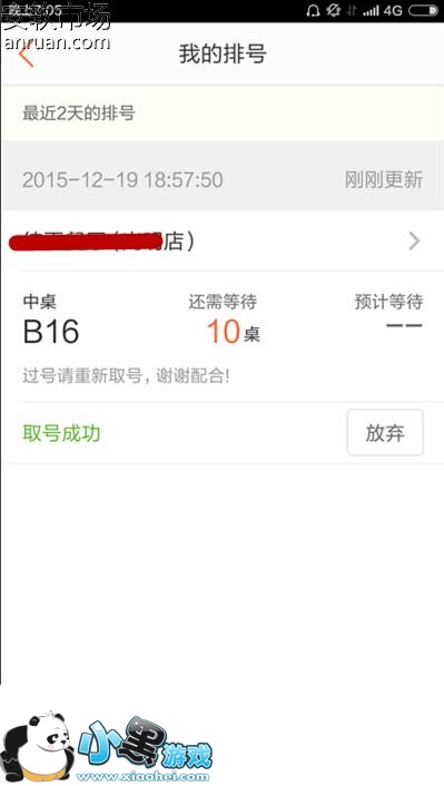2、到了准备吃饭的时候,再打开大众点评客户端,去查看订单当前的排号情况,如下图。