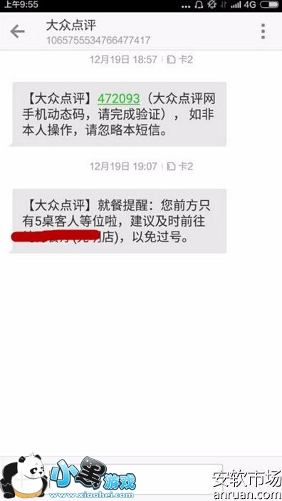 5、当大众点评当前客人只有5桌或更少的时候,大众点评就会给你发短信提醒你,让你尽快赶到就餐地点,以免过号。