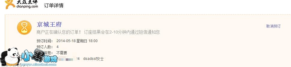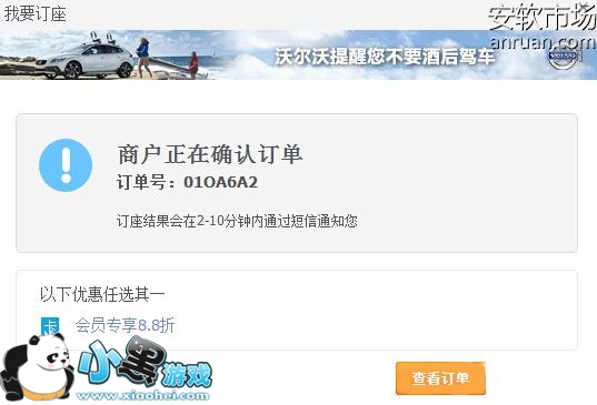 4、当订单成功提交以后,然后等待商家确认接受预定,点击查看订单功能即可,如下图。