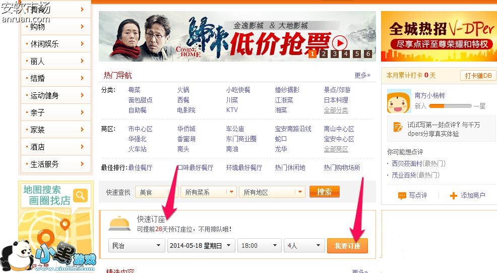 1、进入大众点评然后登录,输入自己的大众点评帐号和密码,找到快速订座这个功能,选择好时间和地点,点击我要预定这个功能即可,如下图。