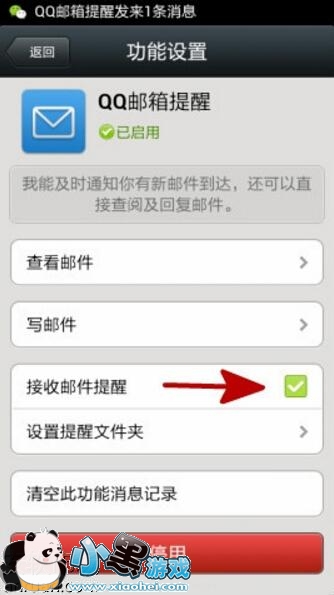 5、在QQ邮箱提醒设置页面,点击启用该功能按钮,就可以接收新邮件和查阅邮件了。