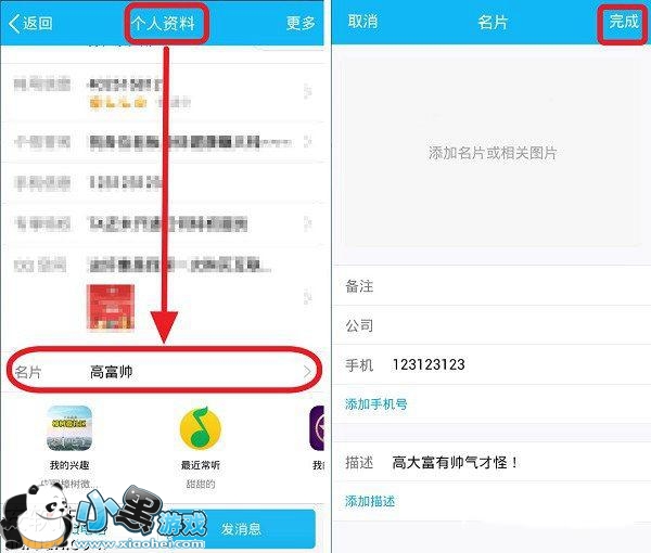 4、另外我们还可以在QQ好友的“个人资料”页面修改电子名片,如图所示。