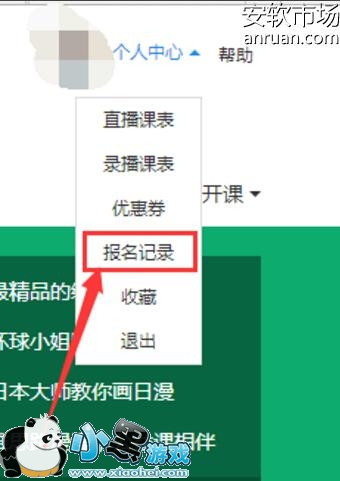 2、点击个人中心三角箭头以后会出现一个下拉功能菜单,其中就有一个报名记录的选项, 点击该功能进入,如下图。