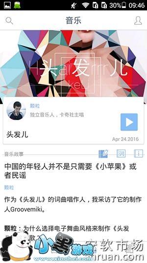 4、点击主界面下方音乐这个功能进入到音乐界面,在音乐界面中可以看到一些歌手的音乐故事,如果你喜欢这个歌手还可以选择收听,如下图。