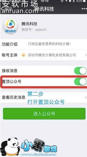 2、打开想要置顶的公众号,开启下图中的那个置顶公众号功能.