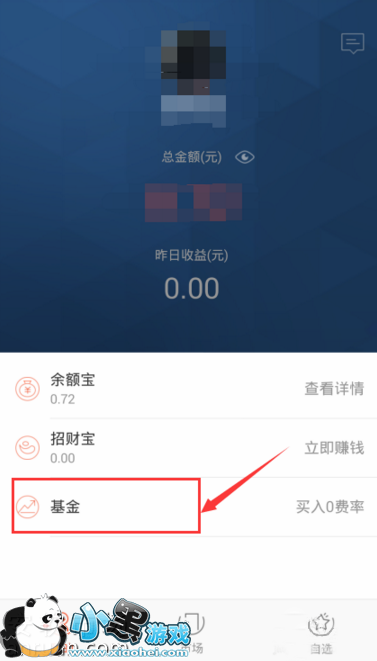 2、成功登录之后,可以看到个人账户的一些基本情况,选择【基金】进入: