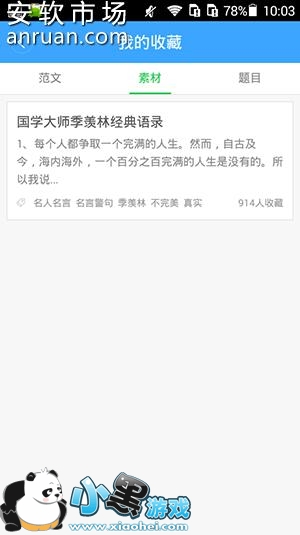 6、进入到我的收藏界面以后,就可以看到我们收藏的作文素材了。