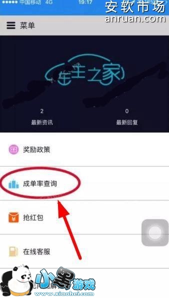 2、然后打开优步司机端的菜单,找到【成单率查询】,如图: