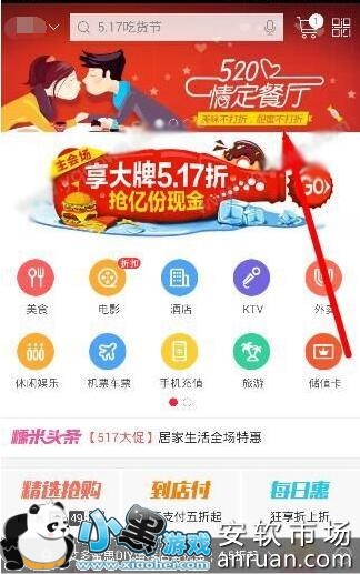 百度糯米520情定餐厅有什么活动 百度糯米520情定餐厅抽奖介绍 1、首先,下载小黑市场最新版的百度糯米,安装打开以后点击上方的“520情定餐厅”: