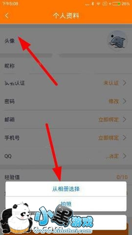 2、继续点击头像,然后选择从相册选择或者直接拍照,如下图: