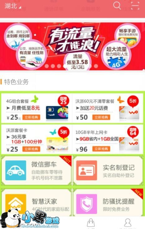 3、现在我们来说说开通办法,通过新下载的联通手机营业厅,在主页下面找到套餐信息,可惜小编的湖北暂时没有: