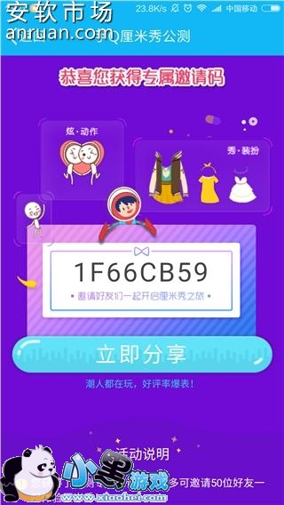 小编厘米秀最新邀请码:1F66CB59,最多50位好友,先到先得! 抓紧时间哟!
