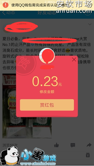 首先,大家打开自己的手机QQ进入好友动态界面——在好友说说的右下角下方有个很小的红包图标(采用了灰色的红包按钮)——点开它就能为好友打赏红包了哦。需要注意的是,用户事先需要对自己的QQ钱包进行认证方可打赏哦。