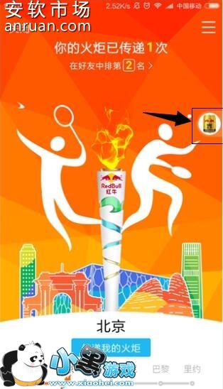 1、找到自己已经传递火炬的界面,点击如下图的标志。