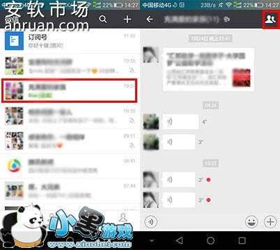 打开微信,找到并打开自己经常聊天的微信群(如果找不到,列表清空了,可以让自己认识并在同一个群里的朋友发个消息,微信群就会有提示的),点击微信群界面右上角的群资料图标,