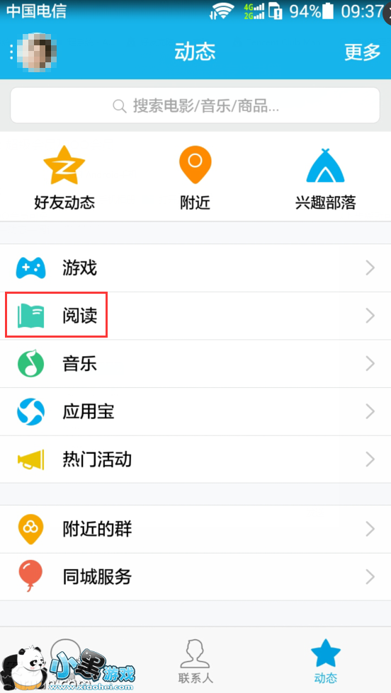 大家看小说很多都是从QQ浏览器中去找小说的,这样看书籍就要收费的。我那这些从手机QQ中进去,在手机QQ右下角有个动态的选项,我们点击(如上图)。