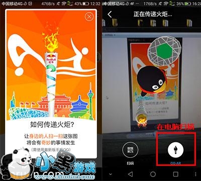 2、然后在远方的朋友可通过电脑或者另一个手机显示你所发的图片,进行同样的扫描就可以传递火炬了。
