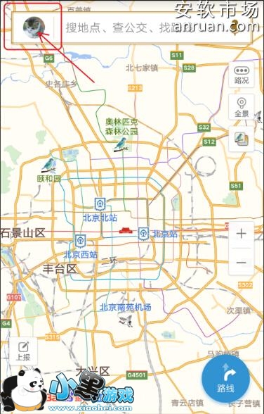 1、打开手机百度地图客户端,进入到手机百度地图主界面,在屏幕上方点击自己的用户头像,如下图。