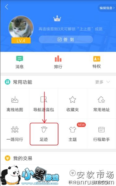 2、进入用户个人界面以后,在界面下方有一个“足迹”的功能选项,点击该功能进入,如下图。