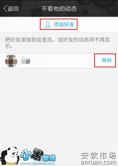 和上面访问设置一样的,【添加好友】进去就行了,等有需要就再移除就可以重新看到对方的动态了。
