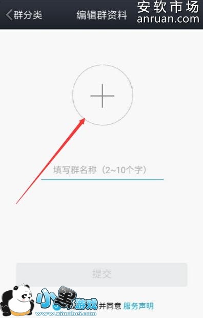 5、此时就进入到“编辑群资料”环节,根据要求设置好群头像和群名称以后,就点击“提交”这个功能,如下图