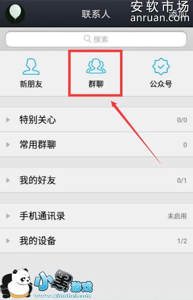 1、打开手机QQ客户端,进入到手机QQ主界面以后,点击联系人界面中的“群聊”按钮,如下图