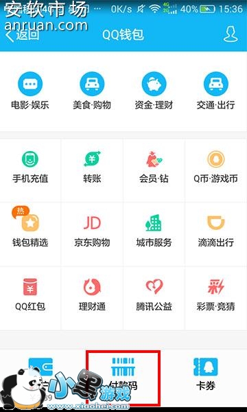 2、在QQ钱包界面下方可以找到“付款码”,点击打开就可以看到自己的付款码了,然后给店家扫一下就可以支付完成。