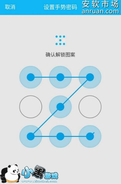 4、进入到“手势密码锁定界面”以后,有一个创建手势密码的功能,点击该功能进入,就可以开始设置手势密码了,绘制完手势密码以后,还要确认一次手势密码,如下图