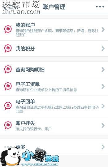 4、进去账户管理之后,可以看到各种功能,账户挂失,查询明细等,如下图所示