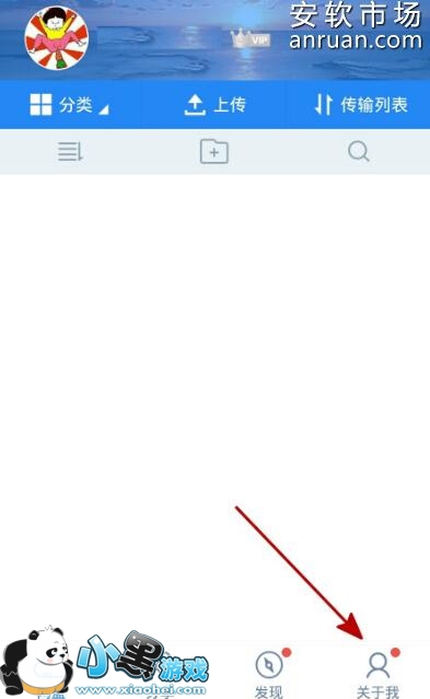 1、打开百度云客户端,进入到百度云主界面中,点击主界面下方“关于我”这个功能选项,如下图所示