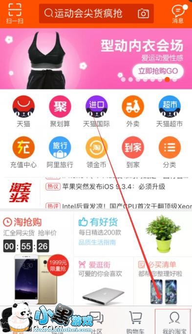 1、打开手机淘宝客户端,进入到手机淘宝主界面中后点击界面右下角“我的淘宝”进入,如下图所示