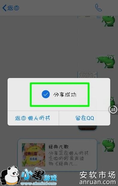 5、当分享成功以后,会出现一个分享成功的窗口,然后好友就可以看到你分享给他们的小说资源了。