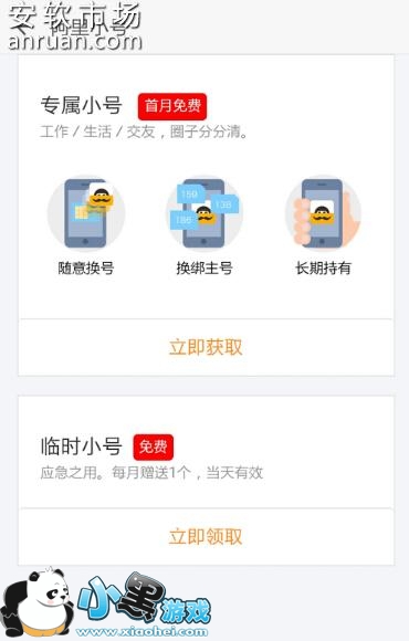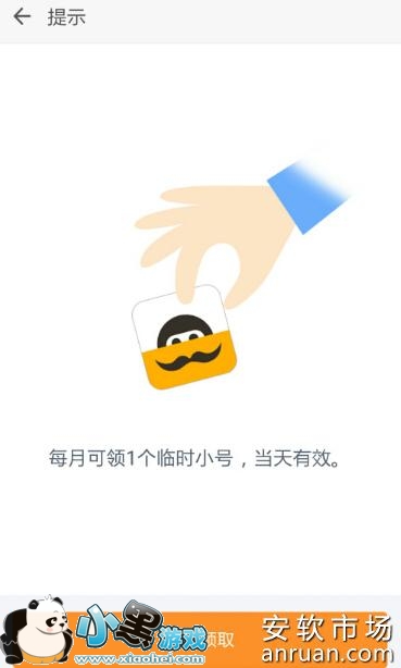 4、也可以申请临时小号,这样最多可以使用一个月。点击临时小号下的立即获取,然后点击确认领取,如下图所示