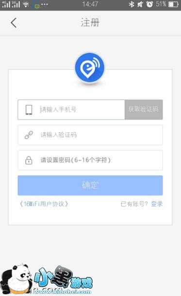 3、进入到16wifi登录界面以后,输入自己的手机号,再输入手机接收到的短信验证码,设置一个密码,点击缺点按钮,如下图所示