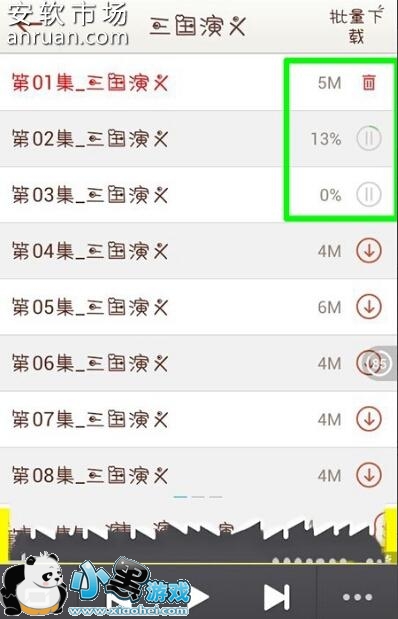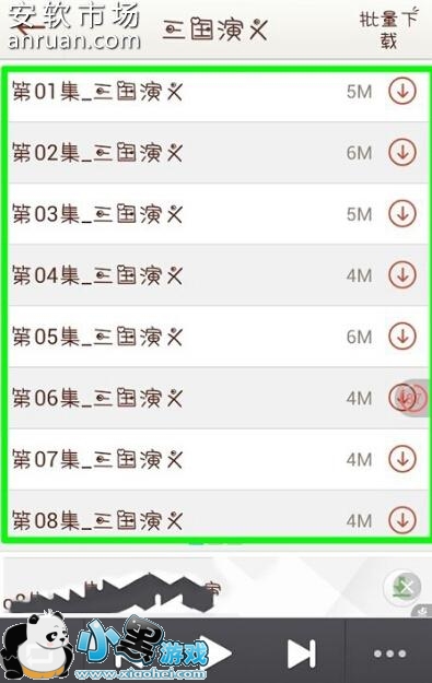 3、此时就进入到了该书籍的播放界面,在其书籍列表的右侧可以看到有下载的按钮,你可以选择下载其中一个章节,也可以批量下载全部章节,如下图所示
