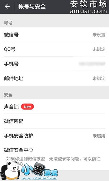 4、进入新注册好的微信账户界面,找到设置键点击打开,再打开账号与安全