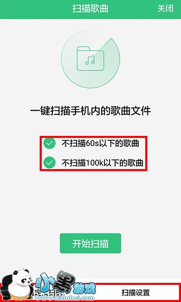 4、进入扫面歌曲界面,可以对歌曲扫描位置大小等进行设置,然后开始扫描歌曲