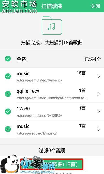 5、扫描时间不会很长,扫描完成后可以选择歌曲进行添加,添加成功后就可以选择自己喜欢的歌曲播放了