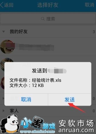 则屏幕弹出了一个对话框,显示要发送给你的好友,如果确认要发送的话,选择“发送”。