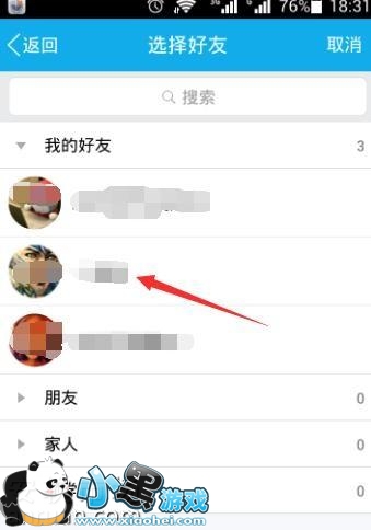 点击后,则出现了你的qq好友列表(qq要事先在手机上安装和登录),选择你想发送给的好友。