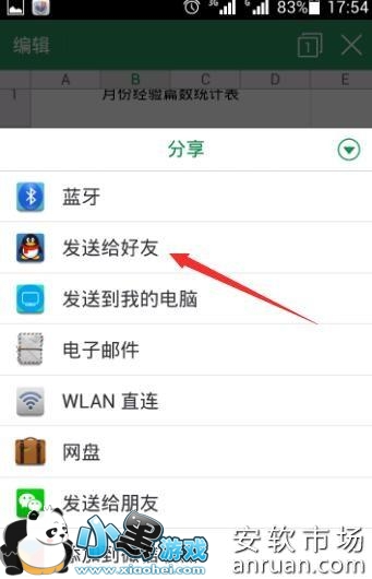 系统会弹出一个“分享”页面,列举了很多分享的途径,选择QQ的“发送给好友”项目。