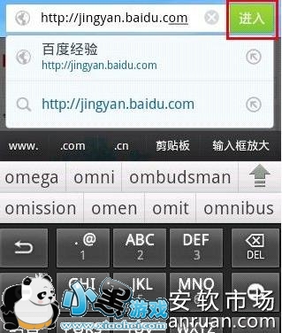 1在手机端QQ手机浏览器地址栏中输入百度经验电脑端地址,点击“进入”按钮,如图所示。