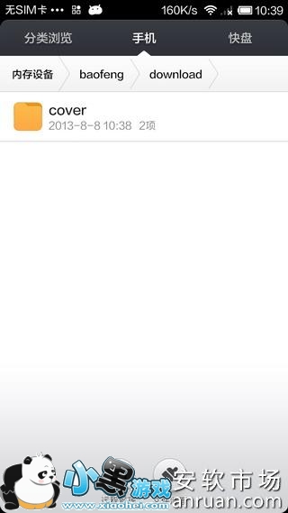 用文件管理软件比如RE管理器,ES文件管理器打开手机存储目录:/baofeng/download/cover/下可以找到手机暴风影音缓存文件,但是找到之后发现手机暴风影音的视频格式是特有的,用别的视频播放器播放不了。如下图,视频文件后缀居然是.cover: